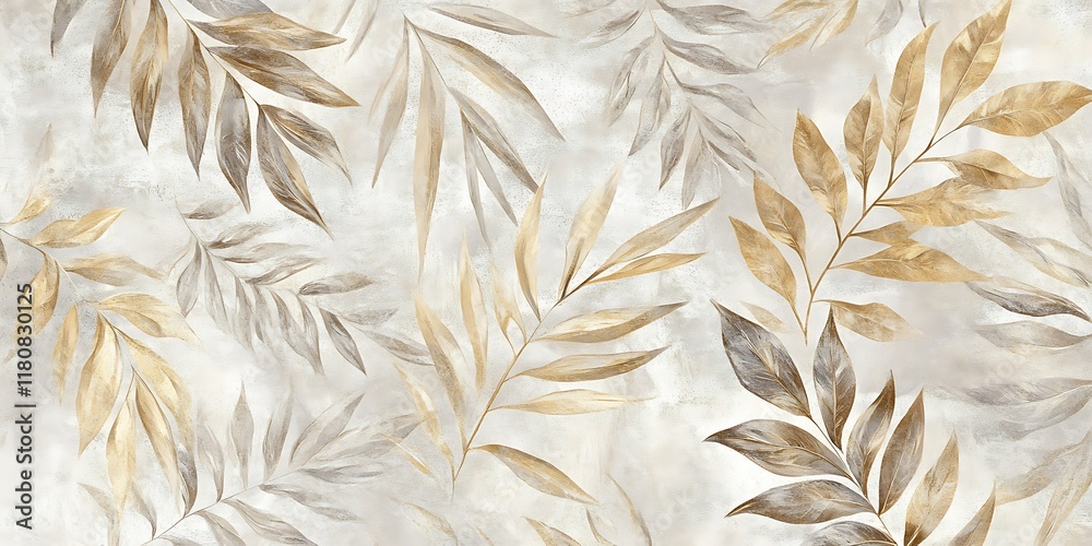Golden & Gray Leaves Pattern Nature Background Elegant Wallpaper Mural - Decorly Solutions | Decorly Solutions
