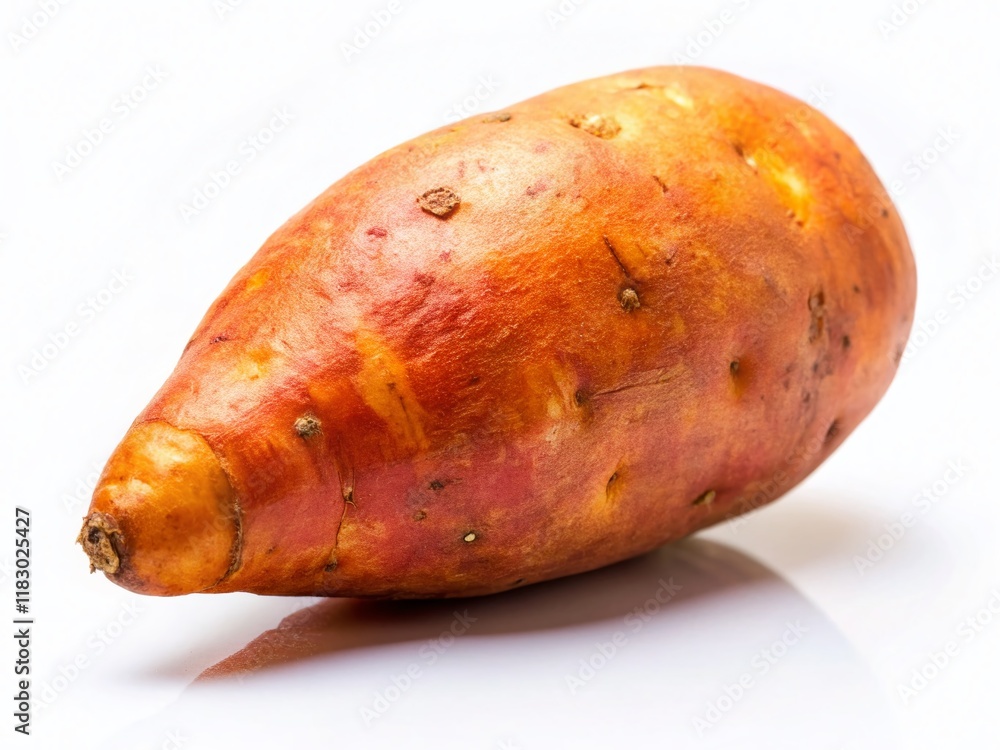 Single Fresh Sweet Potato on White Background