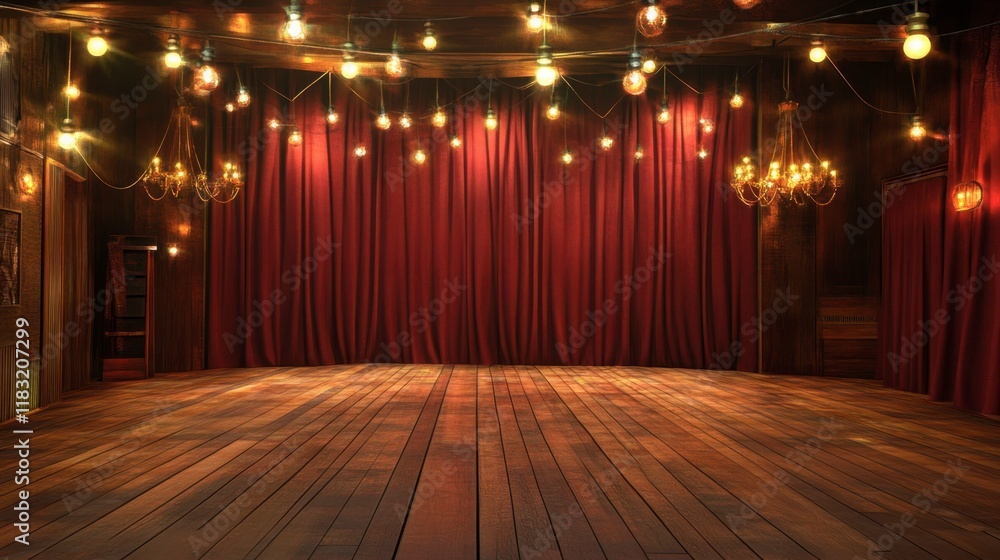 A Theater Stage With Thick Velvety Curtains Hanging Wallpaper Mural - Decorly Solutions | Decorly Solutions