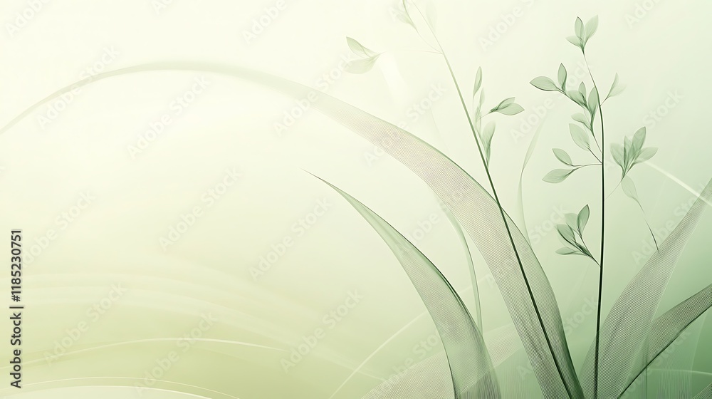 A Digital Art Image Of Green Branches And Leaves Against A Soft Pastel Background.