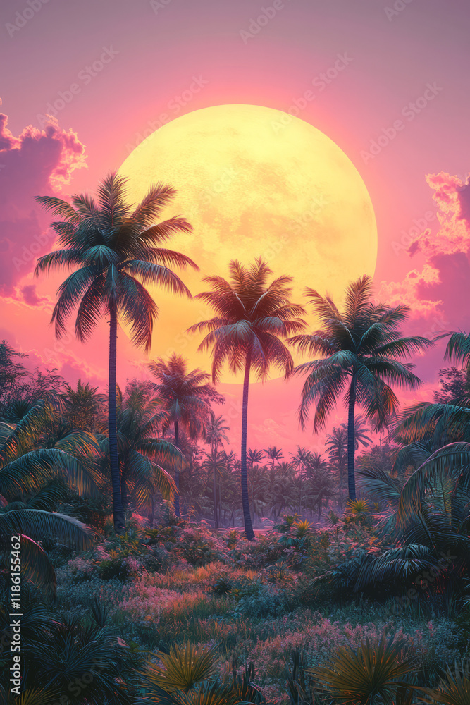 Stylized Palm Tree Cluster On A Horizon Line Wallpaper Mural - Decorly Solutions | Decorly Solutions