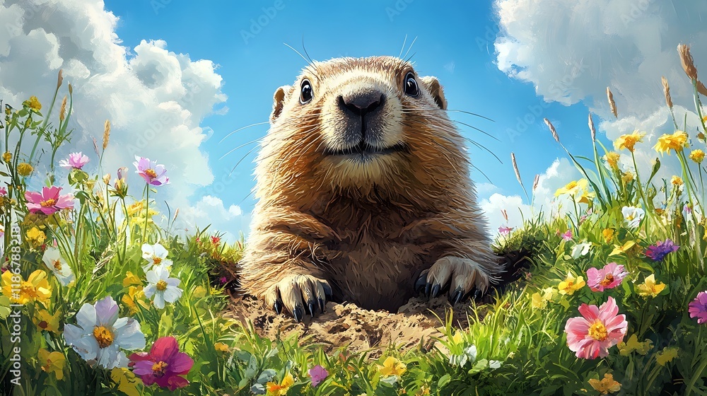 Vibrant Vector Illustration Featuring A Joyful Groundhog Celebrating Wallpaper Mural - Decorly Solutions | Decorly Solutions
