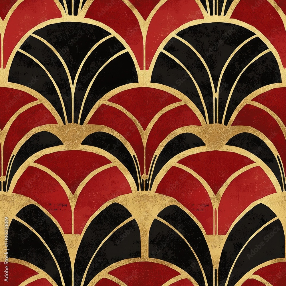 Art Deco Pattern Featuring Fan Shapes In Red Wallpaper Mural - Decorly Solutions | Decorly Solutions