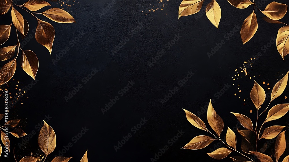 Luxurious autumn matte background with black and gold, featuring minimalistic design