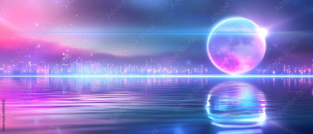 Celestial Orb Reflecting in a Tranquil Cosmic Sea A Vision of Otherworldly Serenity and Radiant Energy