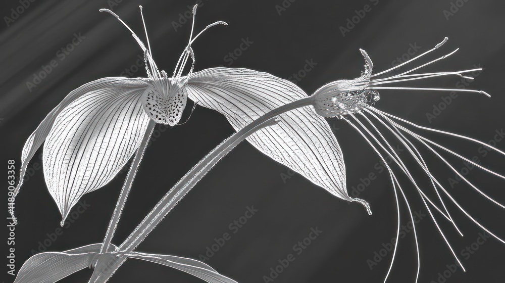 Monochrome Close-up Of Two Delicate Flowers With Intricate Wallpaper Mural - Decorly Solutions | Decorly Solutions