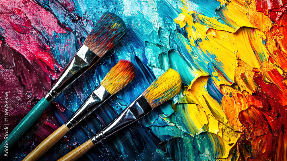 A Vibrant Art Studio Filled With Colorful Canvases Wallpaper Mural - Decorly Solutions | Decorly Solutions