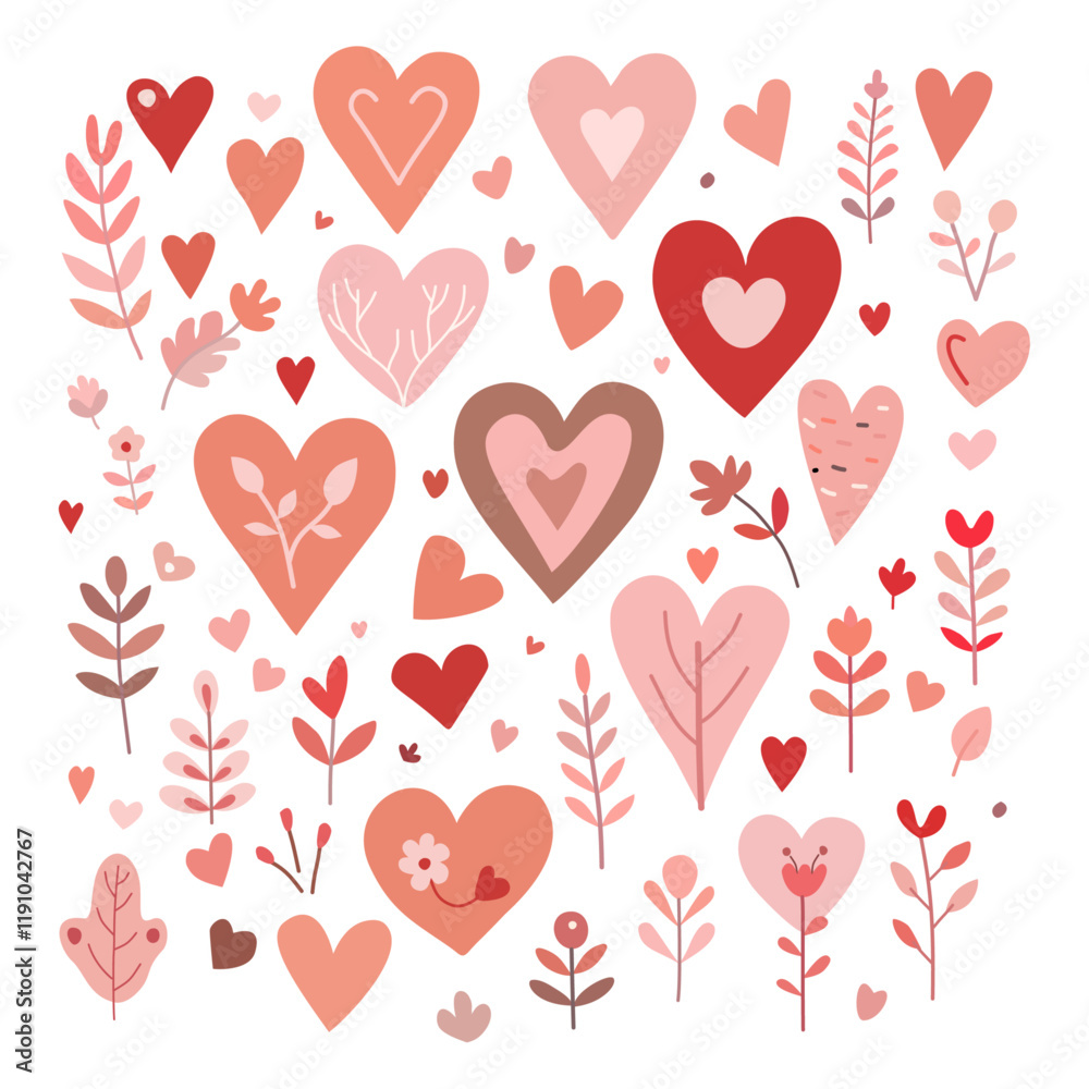 Set Of Abstract Hearts Flowers And Leaves Colored Wallpaper Mural - Decorly Solutions | Decorly Solutions