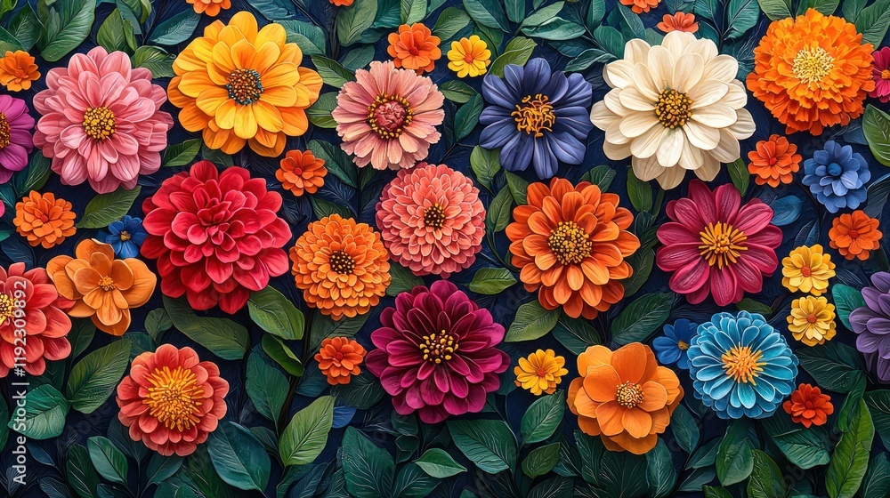 Colorful Flowers With Lush Green Leaves Wallpaper Mural - Decorly Solutions | Decorly Solutions