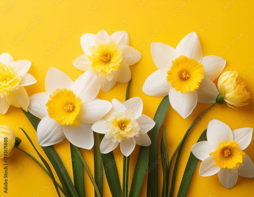 Generated image White and yellow spring flowers on yellow ba Wallpaper