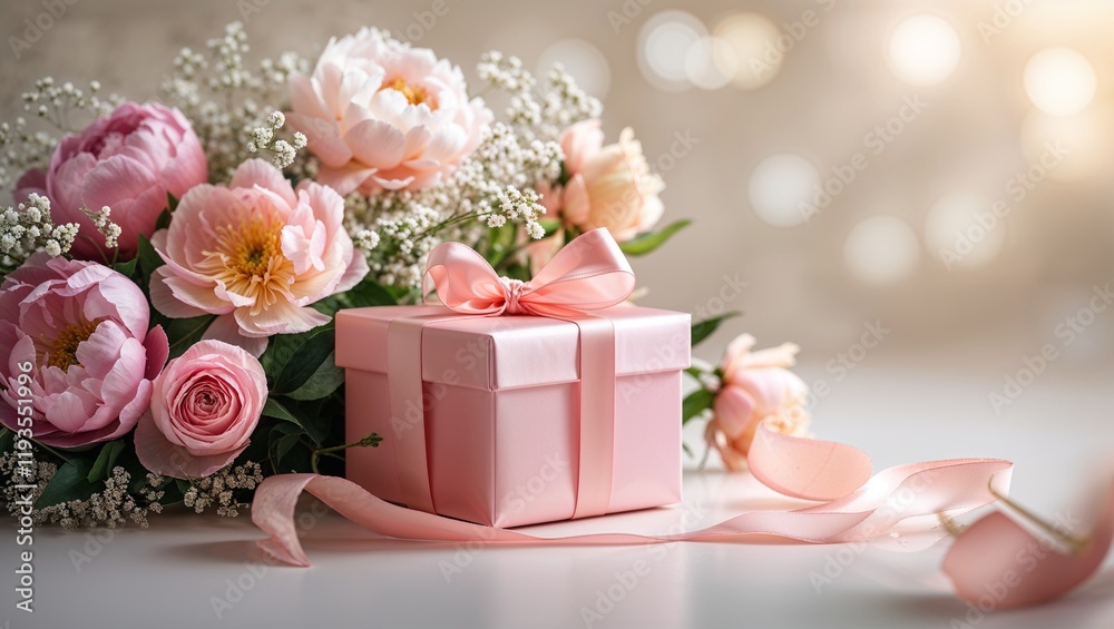 A Pink Gift Box With A Ribbon Beside Wallpaper Mural - Decorly Solutions | Decorly Solutions