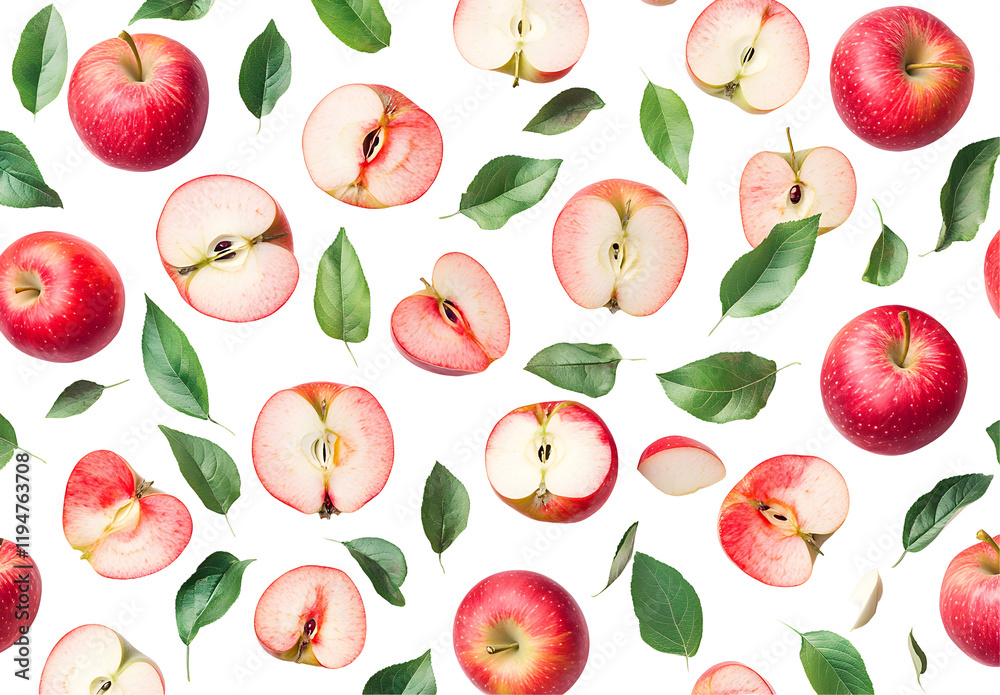 Red Apples Sliced & Whole With Leaves Isolated Wallpaper Mural - Decorly Solutions | Decorly Solutions