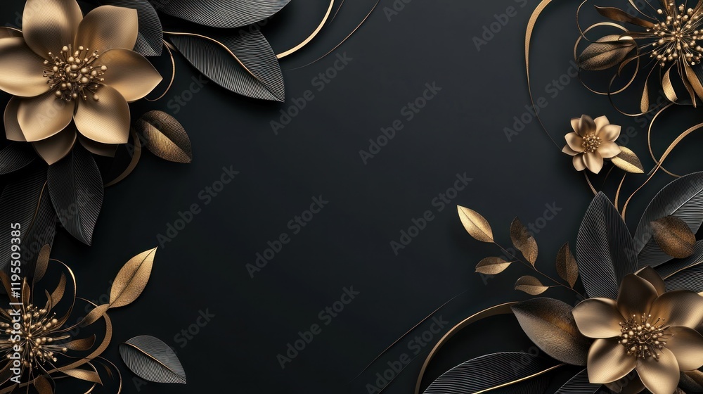 Elegant Gold And Black Floral Arrangement Dark Background Wallpaper Mural - Decorly Solutions | Decorly Solutions