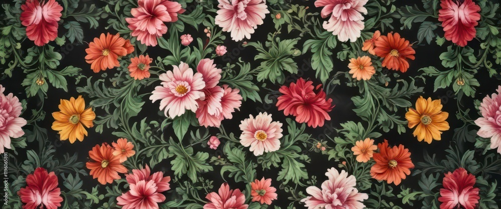 Floral Damask Pattern With Colorful Blooms And Greenery Wallpaper Mural - Decorly Solutions | Decorly Solutions