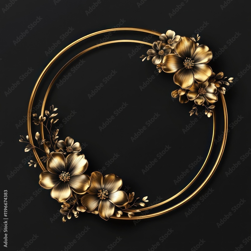 Golden floral frame on black background; elegant design for Wallpaper