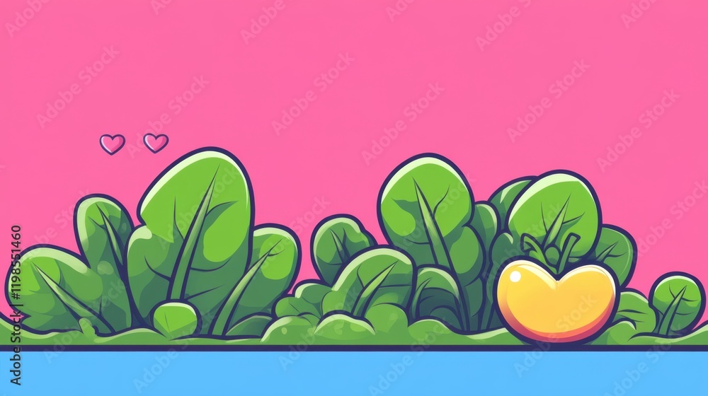 Playful garden illustration with heart-shaped leaves and yel Wallpaper