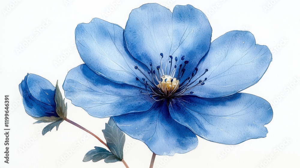 Close-up Of A Single Delicate Blue Flower With Wallpaper Mural - Decorly Solutions | Decorly Solutions