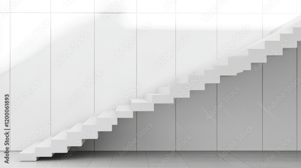 Modern white staircase against a clean white wall Wallpaper