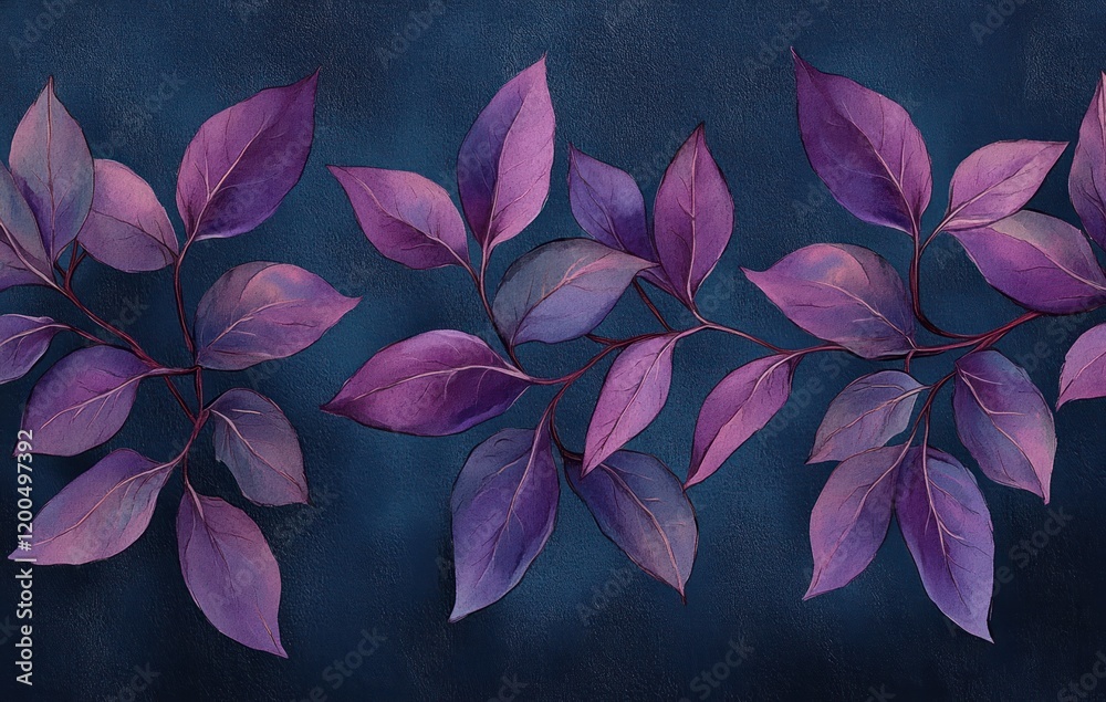 Purple Leaves Botanical Illustration Ethereal Design Art Nouveau Wallpaper Mural - Decorly Solutions | Decorly Solutions