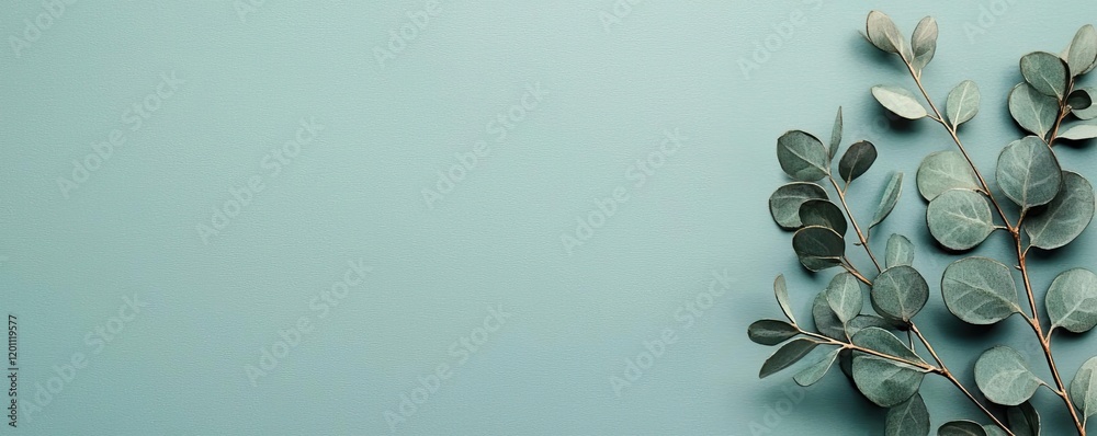 Watercolor Concept Elegant Green Eucalyptus Leaves Against A Wallpaper Mural - Decorly Solutions | Decorly Solutions