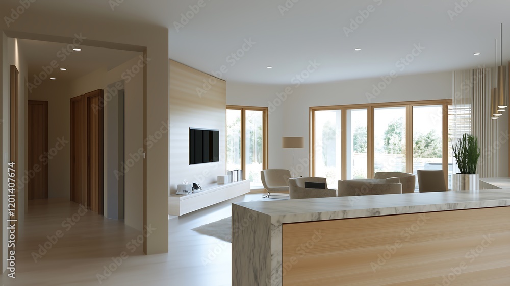 Open Living Area Interior Design With A Marble Wallpaper Mural - Decorly Solutions | Decorly Solutions