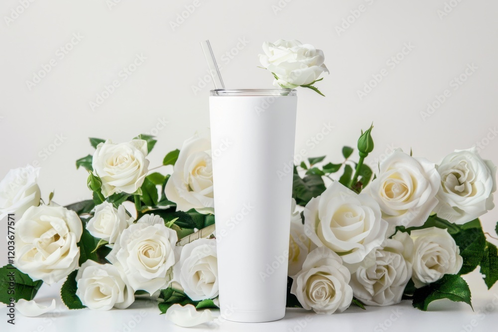 Refreshing Drink Surrounded By Elegant White Roses On Wallpaper Mural - Decorly Solutions | Decorly Solutions