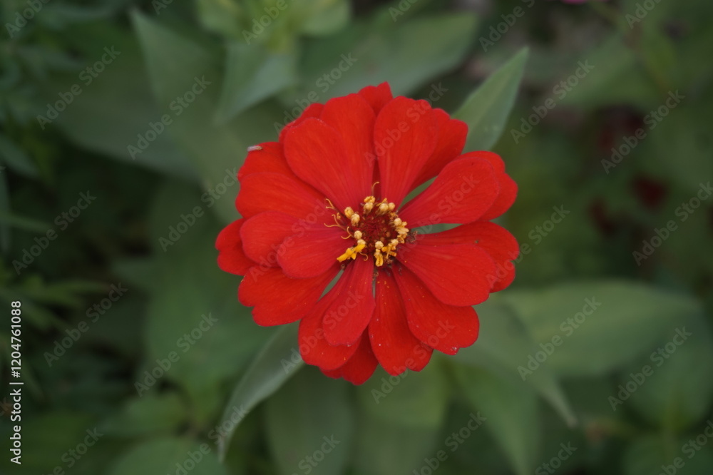 Red Peruvianzinnia Flower On The Side Of A Village Road