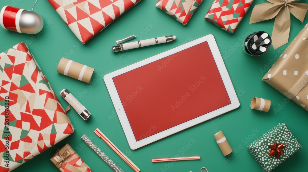 A Modern Gift-wrapping Station Featuring Geometric Patterns On Wallpaper Mural - Decorly Solutions | Decorly Solutions