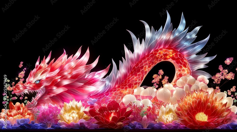 Illuminated Dragon Lantern Festive Floral Display Wallpaper Mural - Decorly Solutions | Decorly Solutions