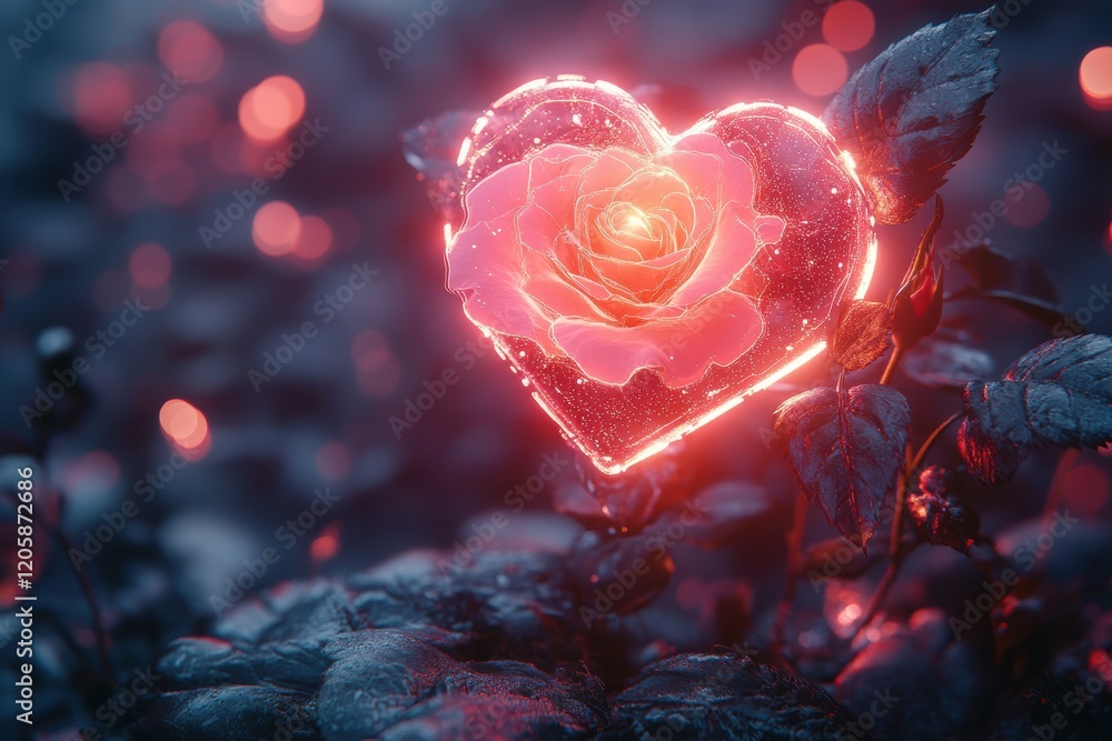 Neon Pink Heart Rose Design For Valentine S Wallpaper Mural - Decorly Solutions | Decorly Solutions