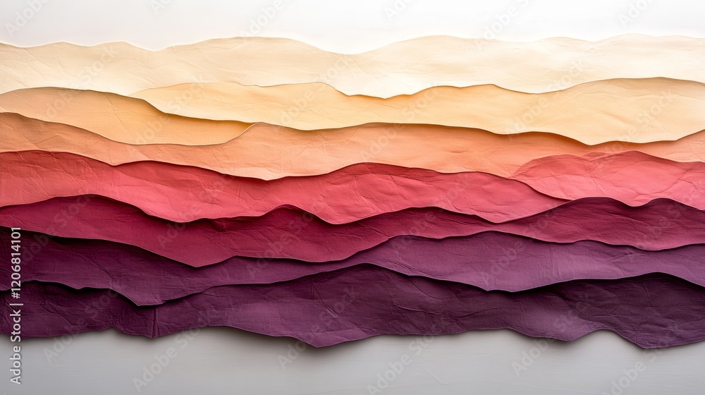 Abstract layered mountain range in vibrant sunset hues.