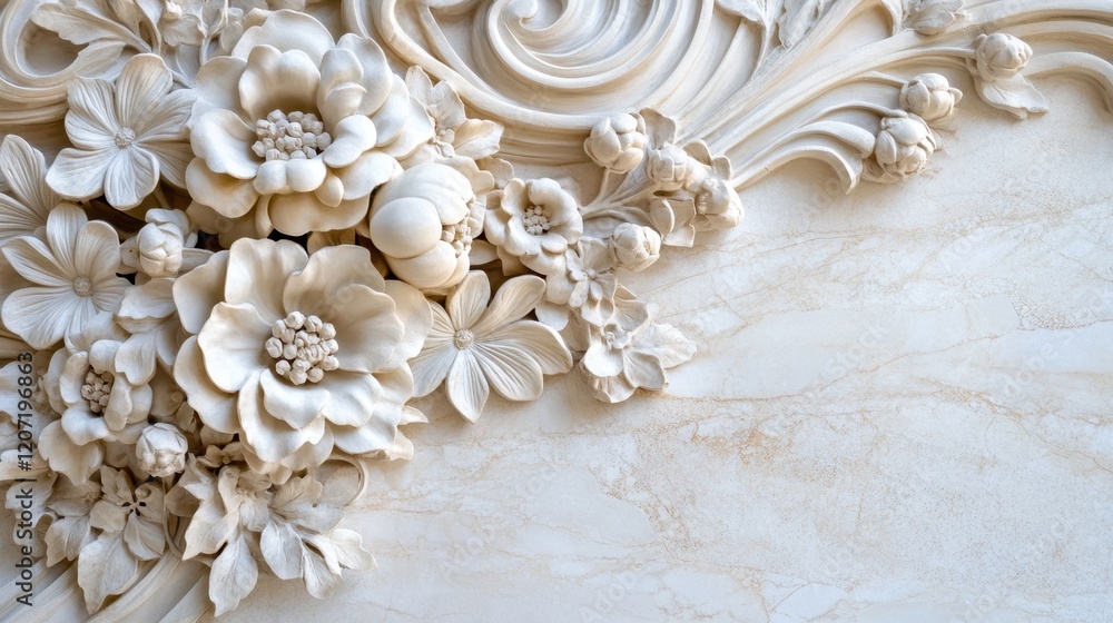 Elegant Floral Bas-relief Carving On Marble With Detailed Wallpaper Mural - Decorly Solutions | Decorly Solutions