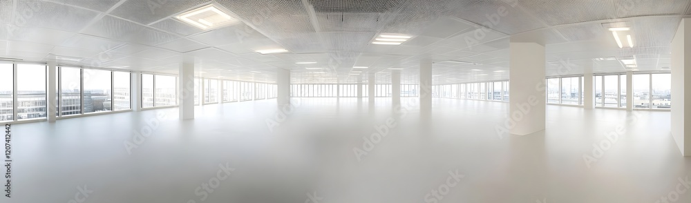 Empty industrial space bright clean interior with large windows and polished floor