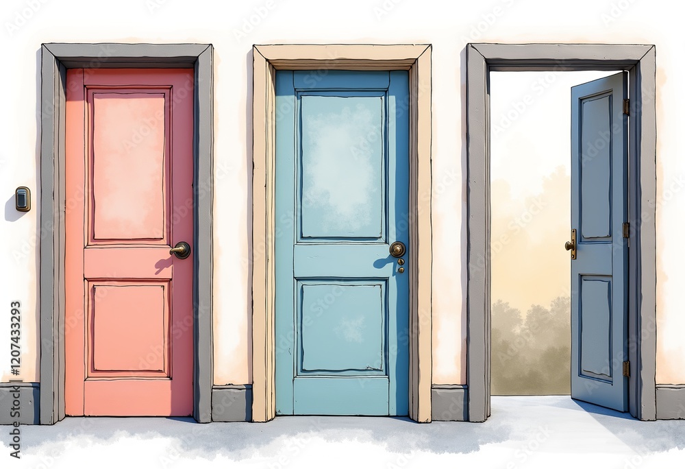 水彩のドアフレームセット:シンプルなスタイル、オープンデザイン、異なるスタイル、ソフトカラー、使用感のあるテクスチャ、背景なし、個別の要素、ミニマリスト、透明、ベクター。 Wallpaper Mural - Decorly Solutions | Decorly Solutions