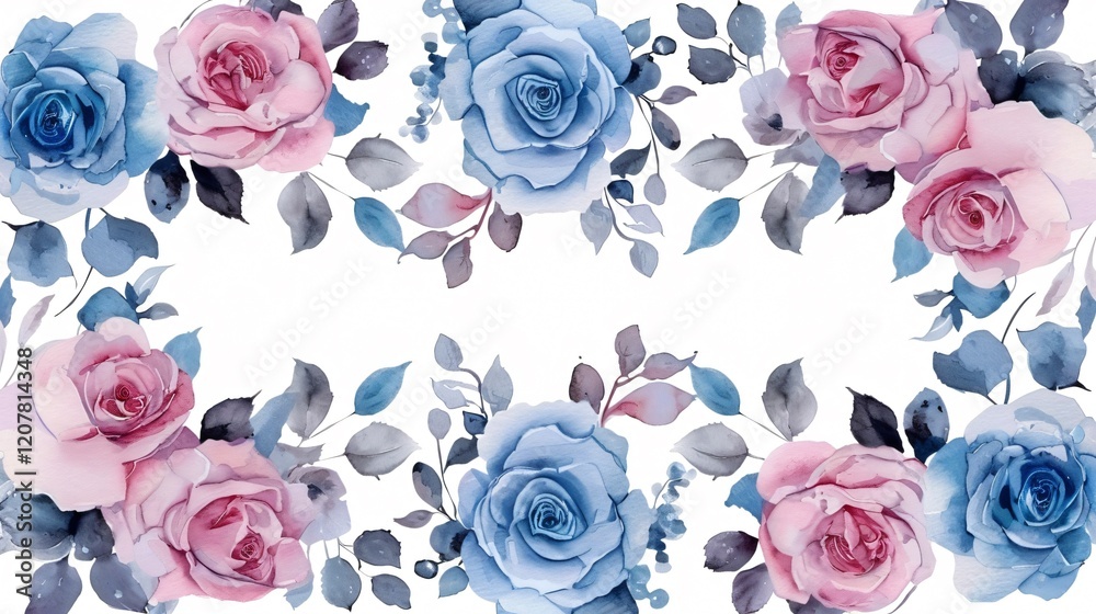 Elegant Seamless Border Frame With Pink Blue Roses Wallpaper Mural - Decorly Solutions | Decorly Solutions