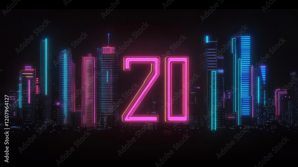 Neon Cityscape 2020 New Year's Eve Digital Art Wallpaper