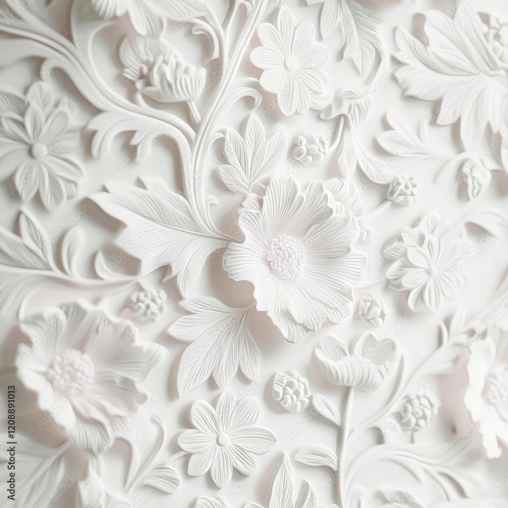 Elegant White 3d Floral Baroque Pattern Ornate Wallpaper Wallpaper Mural - Decorly Solutions | Decorly Solutions