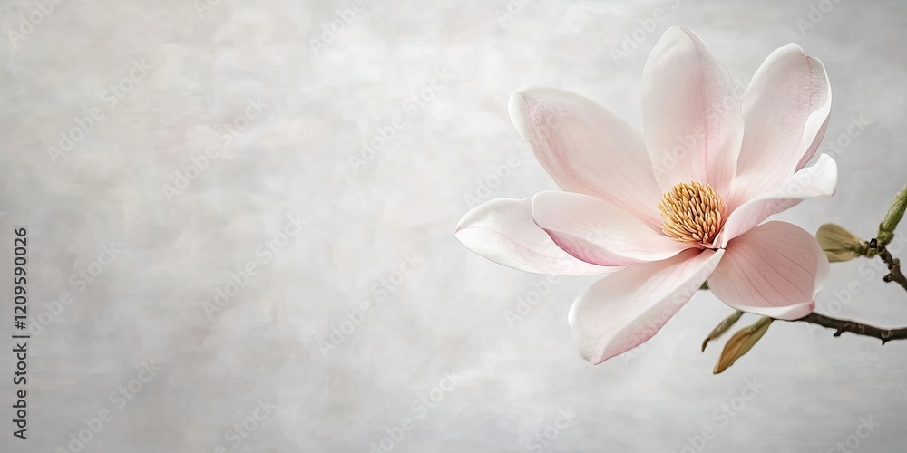 Delicate pink magnolia flower on a soft gray background angl Wallpaper
