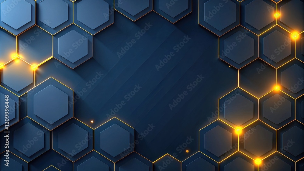 Abstract Hexagonal Structures with Glowing Inner Lights, a Futuristic Design