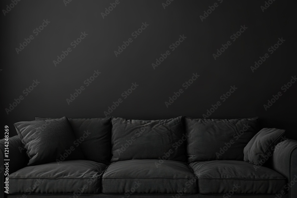 A Modern Black Sofa With Plush Cushions Against Wallpaper Mural - Decorly Solutions | Decorly Solutions