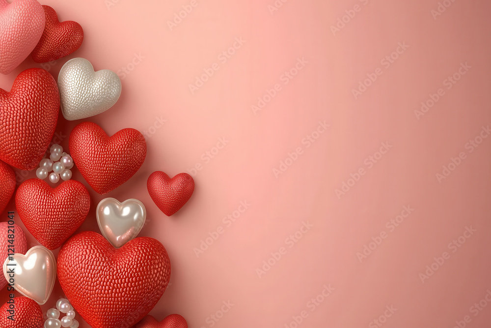 Heart And Pearl Decorations On Pink Background Wallpaper Mural - Decorly Solutions | Decorly Solutions