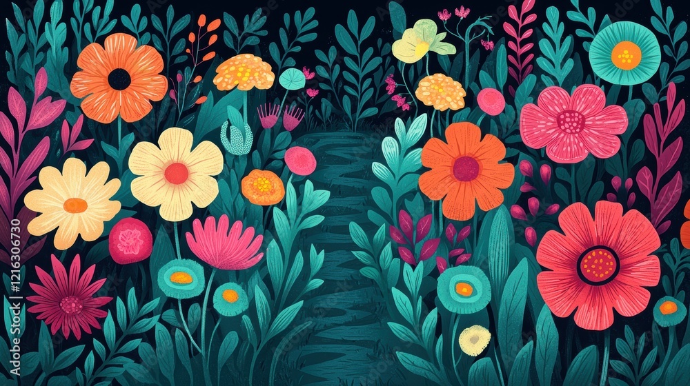 Vibrant Floral Garden Path A Summer Dream Wallpaper
