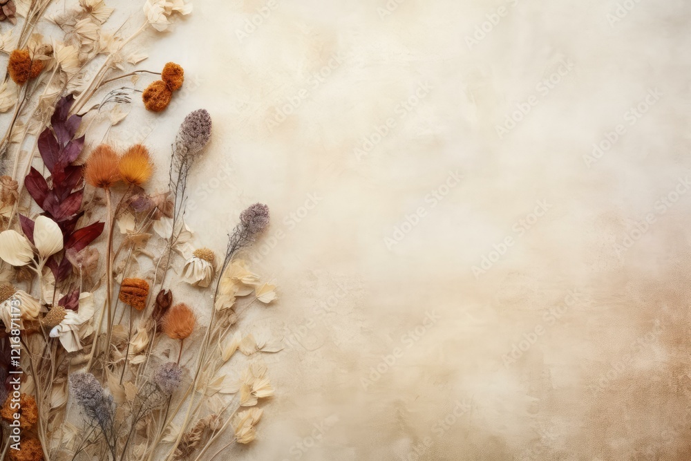 Autumn Composition Of Dried Flowers And Leaves Creating Wallpaper Mural - Decorly Solutions | Decorly Solutions