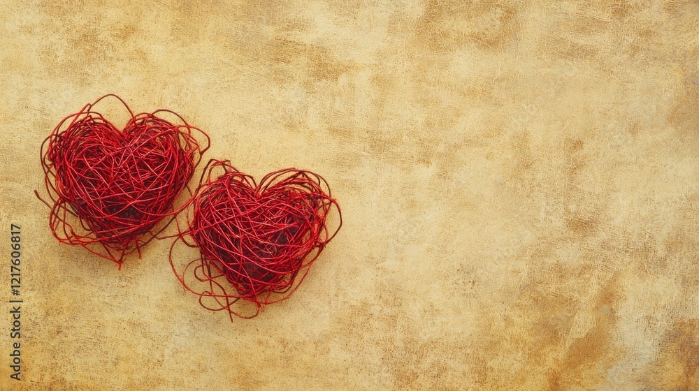 Two Red Hearts On Beige Background A Valentine Wallpaper Mural - Decorly Solutions | Decorly Solutions