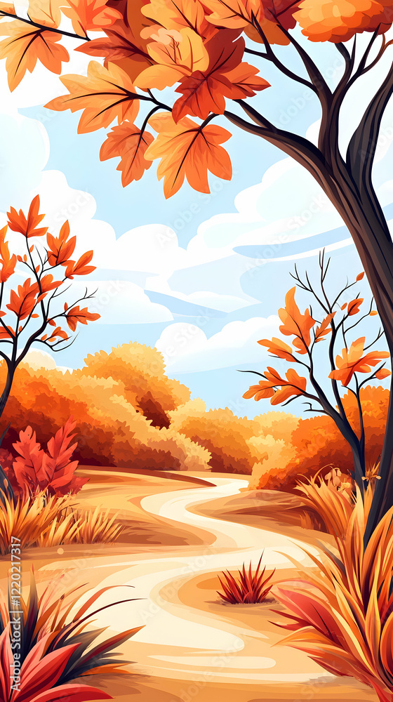 Autumn path winding through forest vibrant fall foliage scen Wallpaper