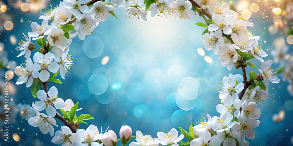 Blue Background White Blossom Circle Bokeh Photography Floral Wallpaper Mural - Decorly Solutions | Decorly Solutions