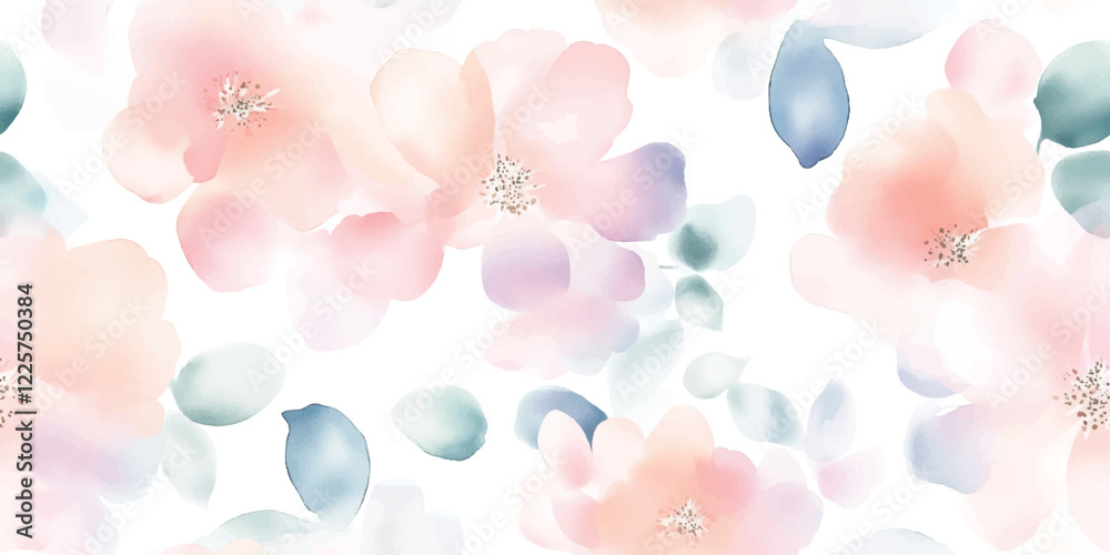 Pastel blossoms float gently in a dreamy, ethereal background.