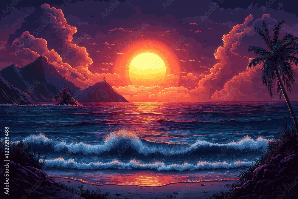 Creating A Retro Tropical Beach Summer Backdrop Graphic Wallpaper Mural - Decorly Solutions | Decorly Solutions