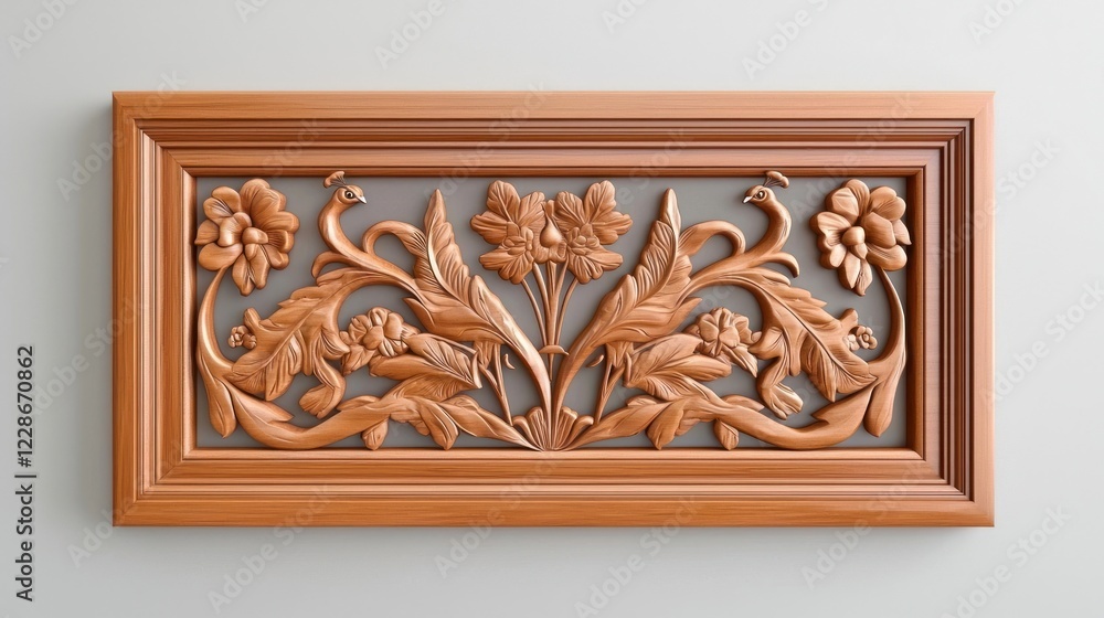 Brown Wooden Panel With Intricate Floral Carving