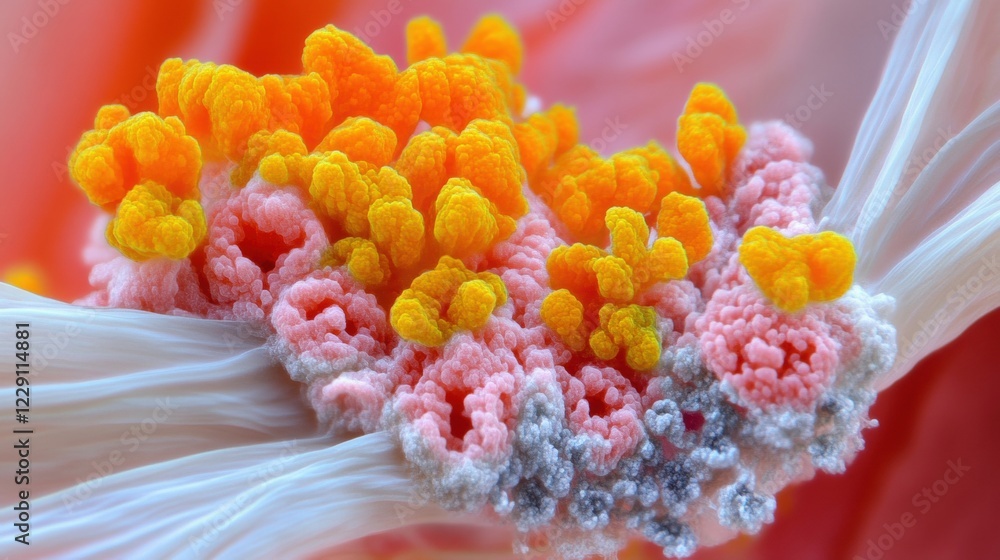 Colorful patterns and shapes in a close-up view of microscopic organisms